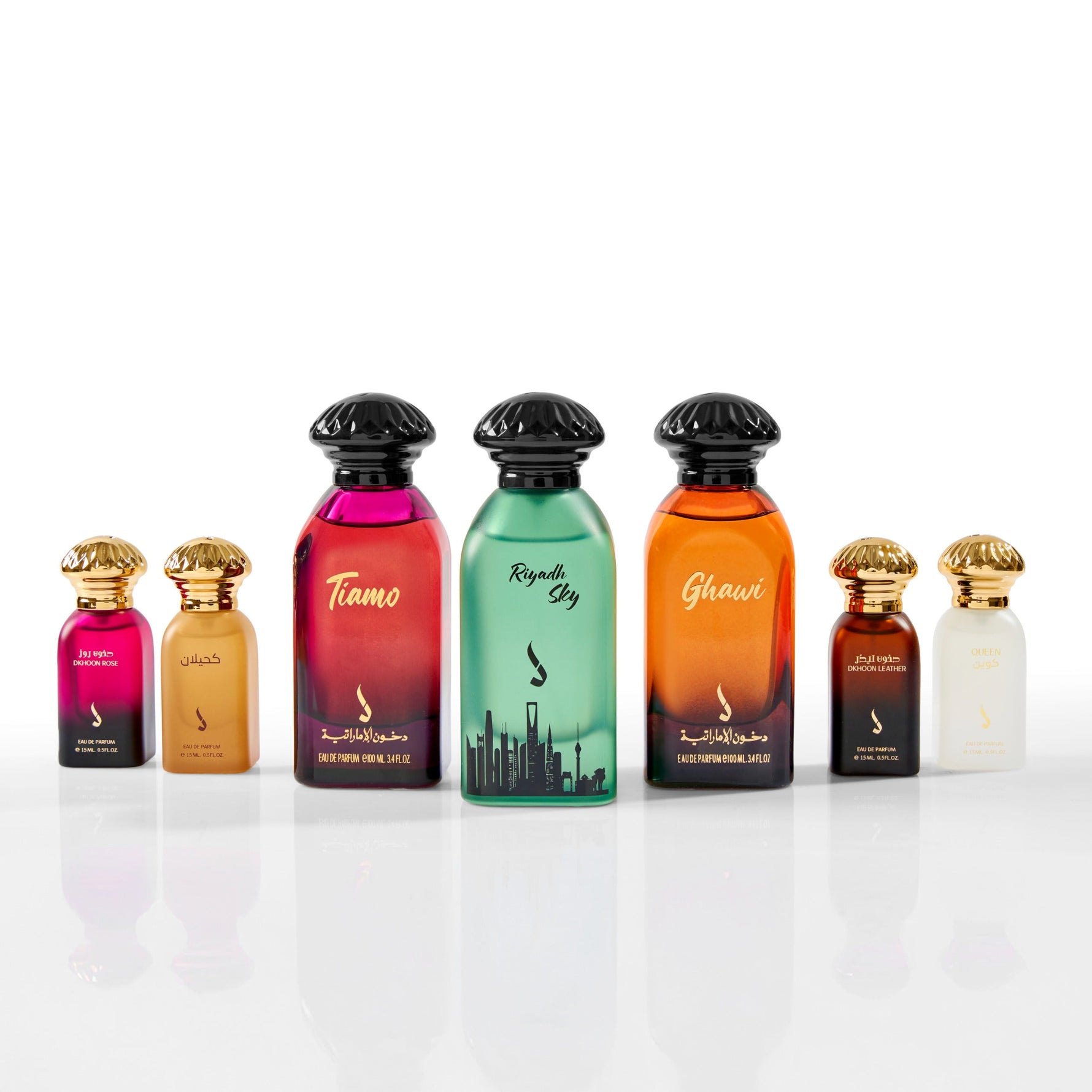 الرياض (100 مل) رائحة مبهجة من الفواكه، الحمضيات، والسويت، تنعش الحواس بروحها النقية مع مكونات المسك والفانيلا والعنبر .