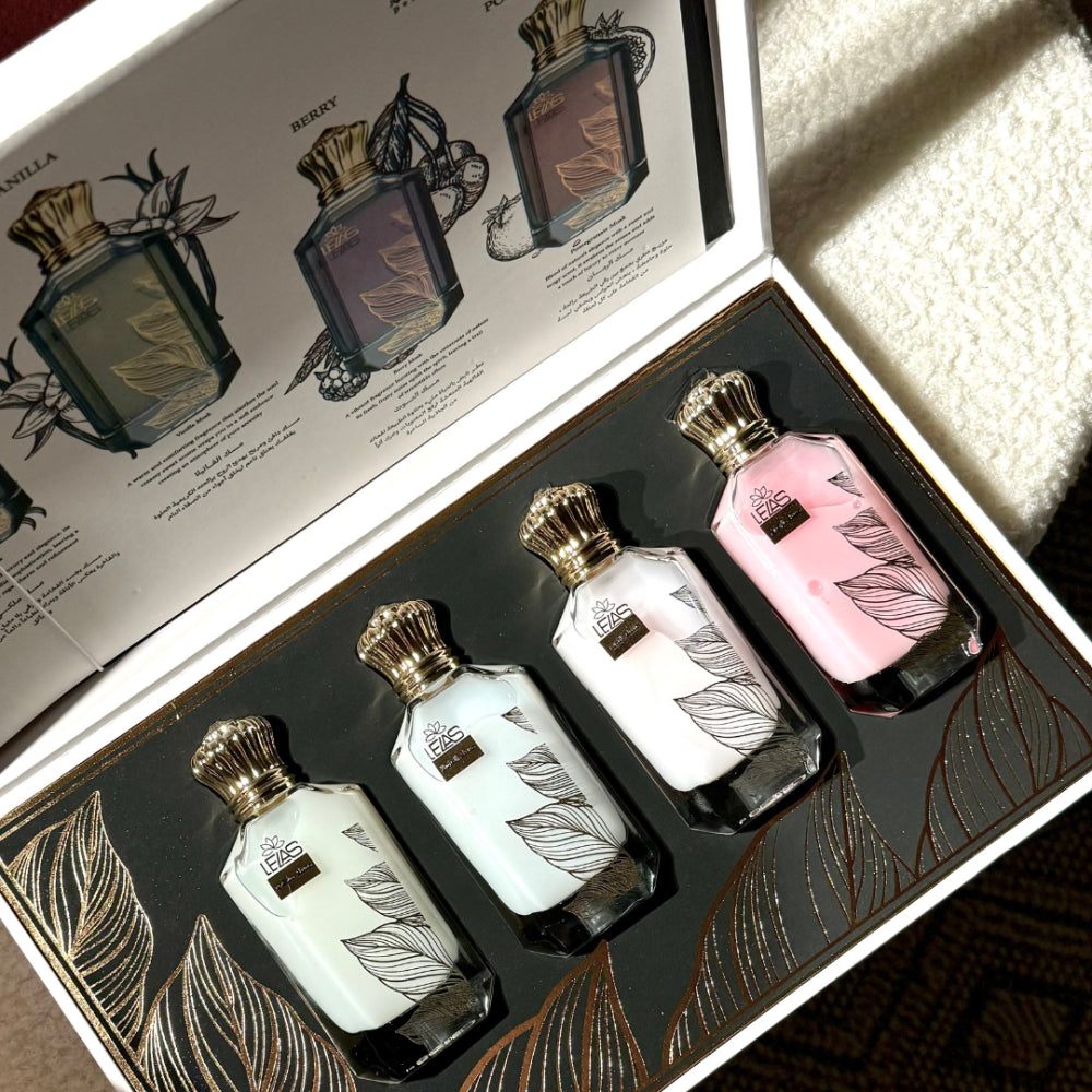 مجموعة مسك ليلاس تضم أربع عطور مميزة بروح المسك الفاخر، بتوليفات تجمع بين النفحات الدافئة والفاكهية المنعشة، لتناسب مختلف الأذواق والاستخدام اليومي.